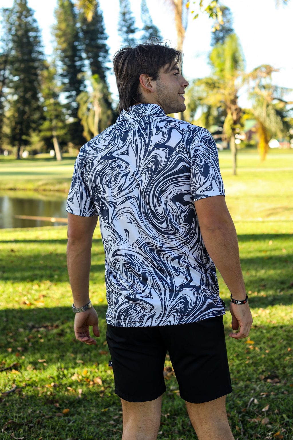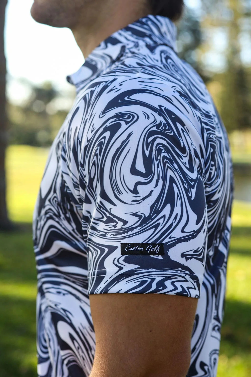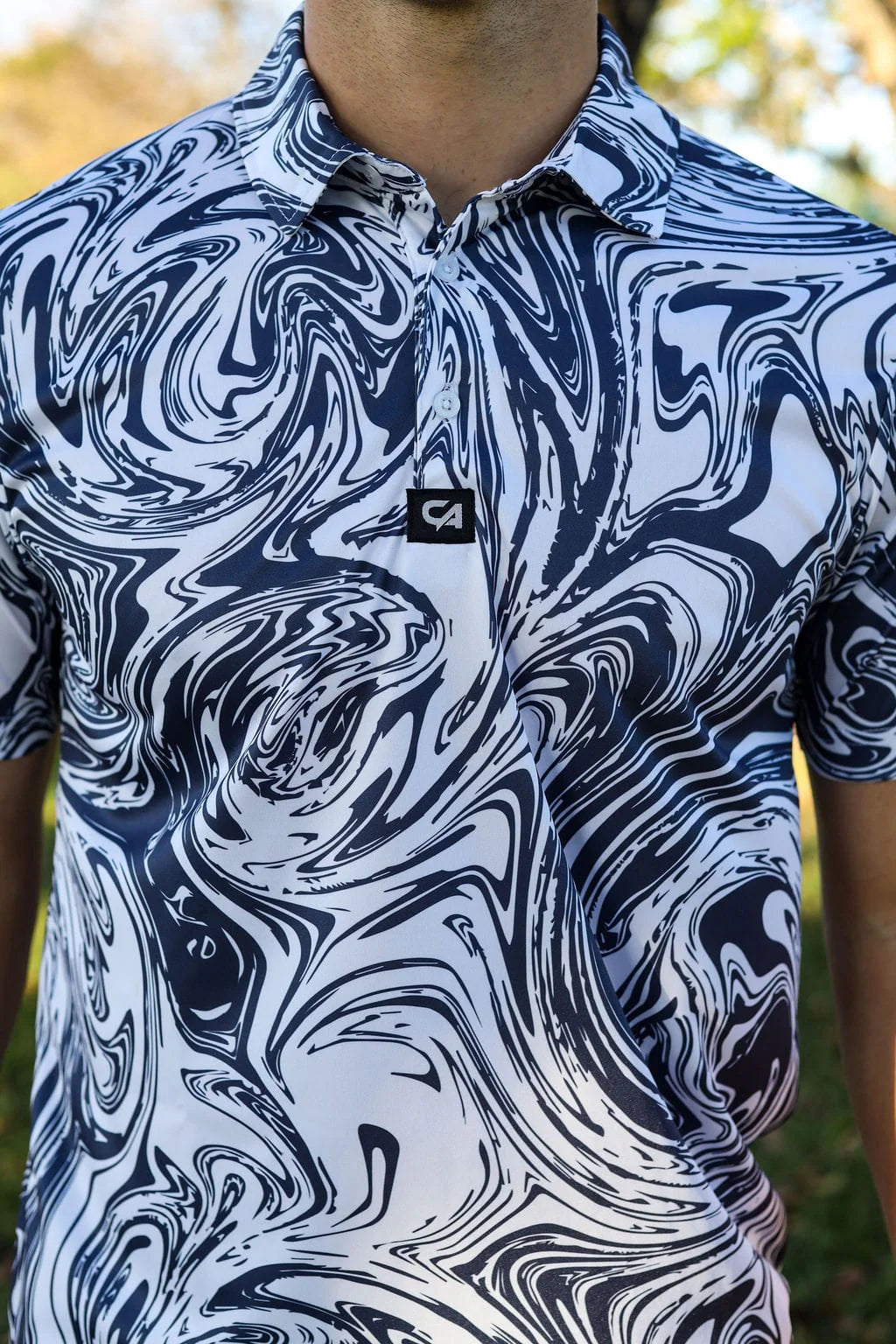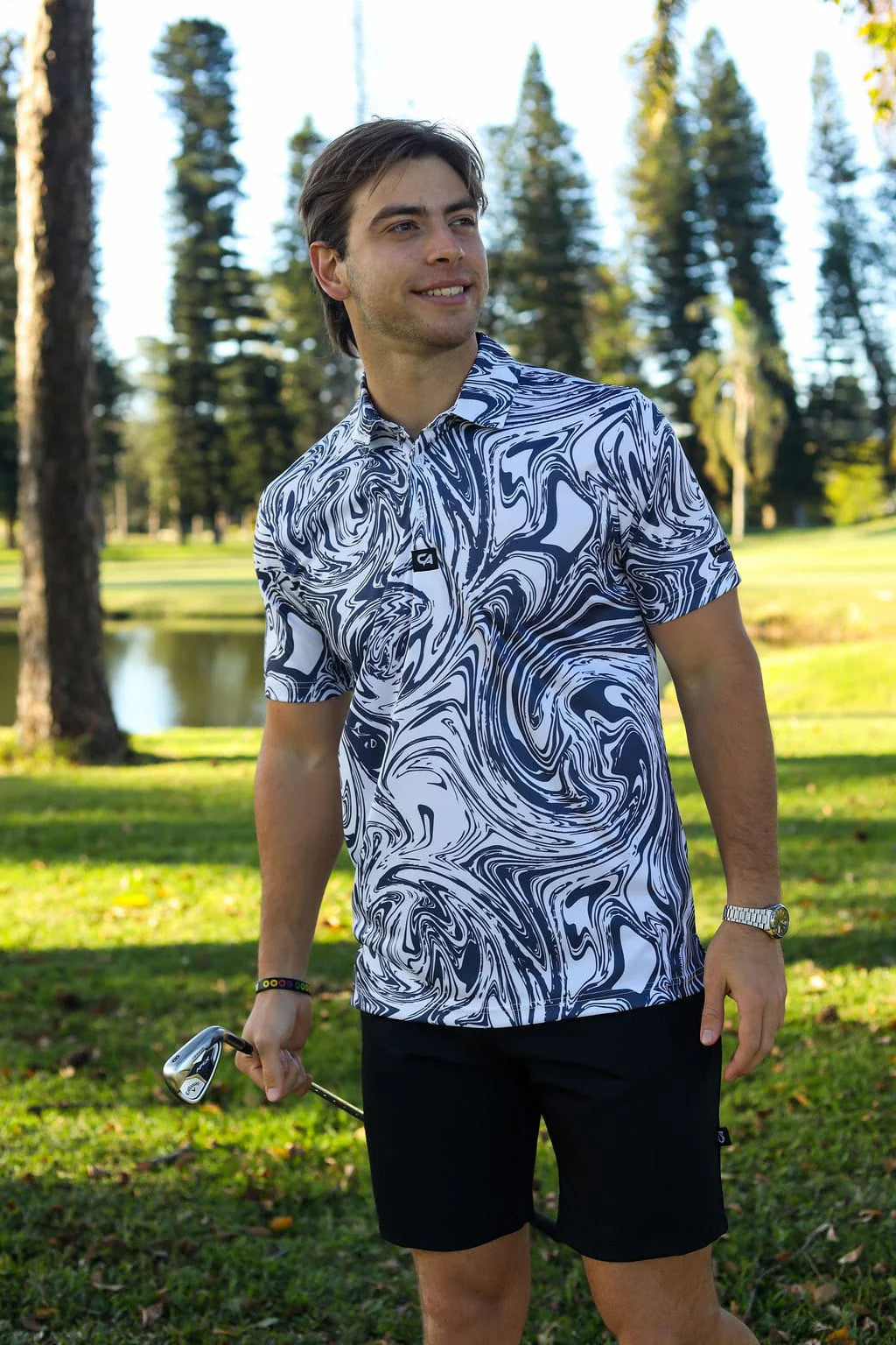 Elevate your golf game with the CA Funky Golf Polo – the epitome of style and flair on the fairway. Say goodbye to boring golf polos and hello to premium-feeling polyester goodness that's softer than a gentle breeze. These edgy polos boast moisture-wicking properties, keeping you cool, dry, and smelling fresh, while the quick-dry feature ensures you stay on top of your game, a true fit, stay-in-place collar, and three color-matched branded buttons.