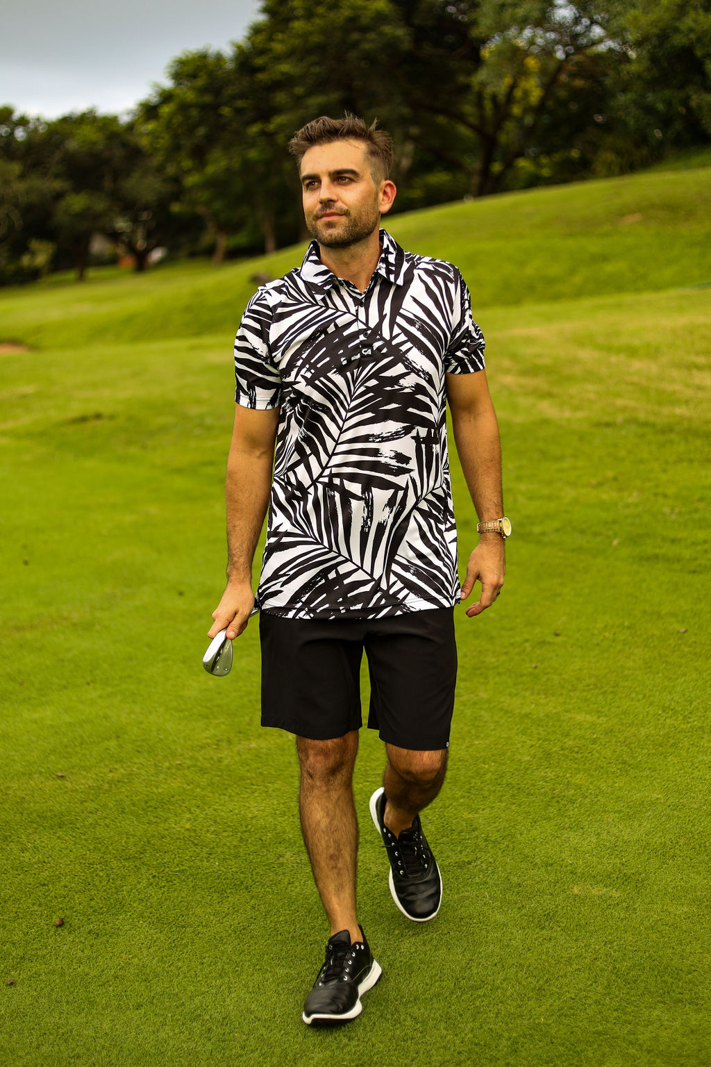 Elevate your golf game with the CA Funky Golf Polo – the epitome of style and flair on the fairway. Say goodbye to boring golf polos and hello to premium-feeling polyester goodness that's softer than a gentle breeze. These edgy polos boast moisture-wicking properties, keeping you cool, dry, and smelling fresh, while the quick-dry feature ensures you stay on top of your game, a true fit, stay-in-place collar, and three color-matched branded buttons.