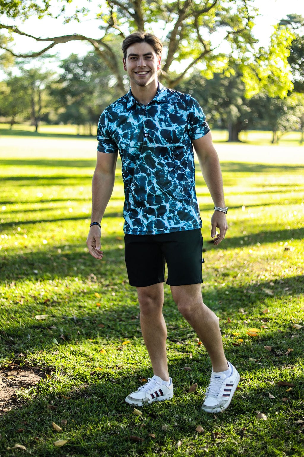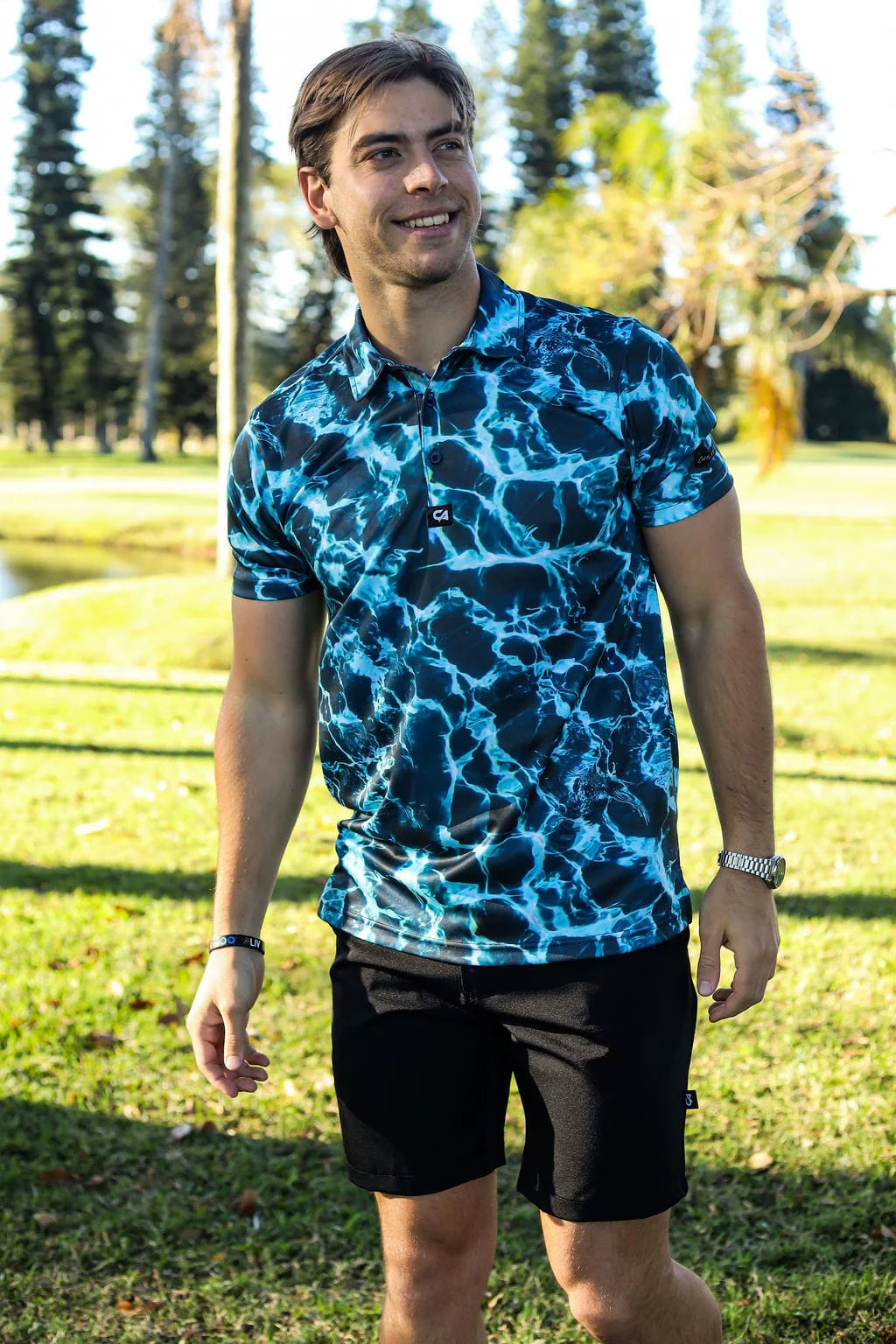 Elevate your golf game with the CA Funky Golf Polo – the epitome of style and flair on the fairway. Say goodbye to boring golf polos and hello to premium-feeling polyester goodness that's softer than a gentle breeze. These edgy polos boast moisture-wicking properties, keeping you cool, dry, and smelling fresh, while the quick-dry feature ensures you stay on top of your game, a true fit, stay-in-place collar, and three color-matched branded buttons.